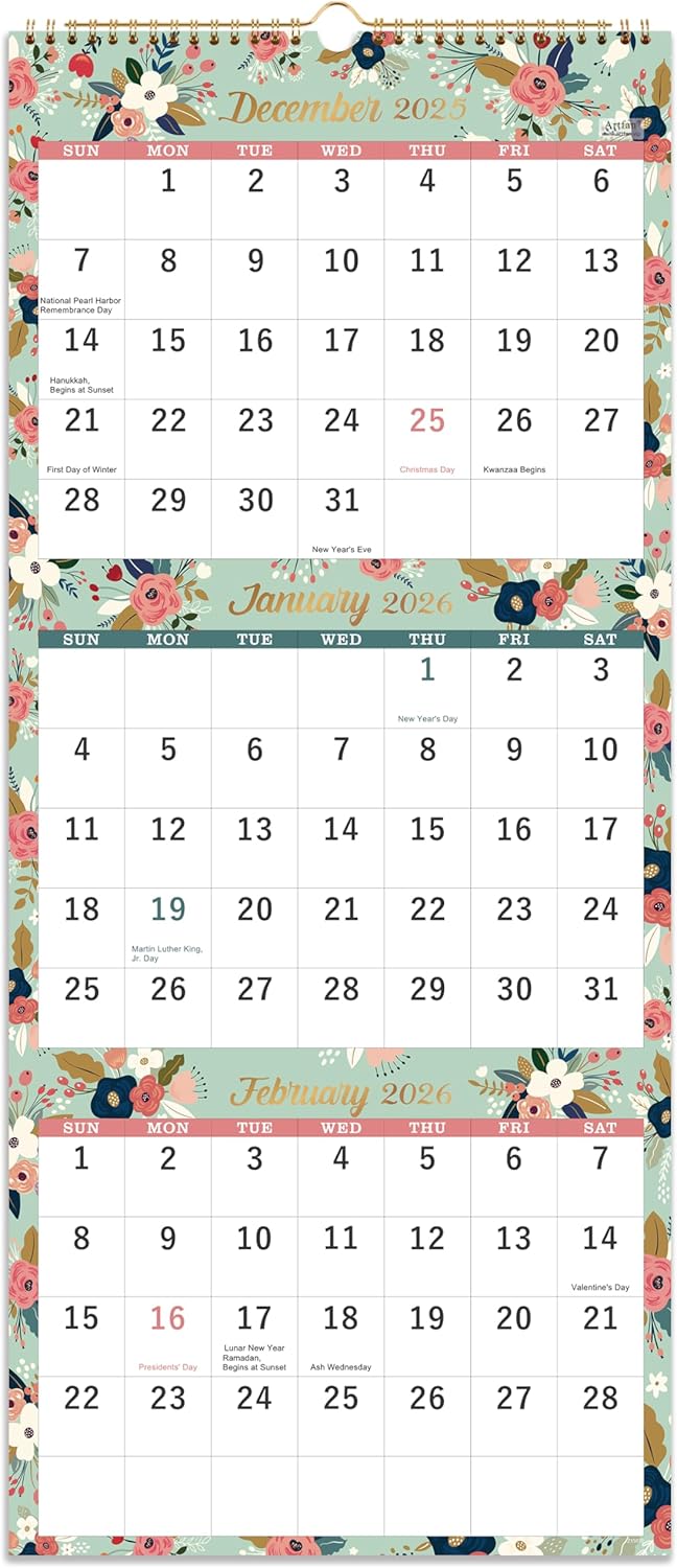 Calendario 2025 – Calendario de pared 2025, calendario de pared de 3 meses (plegado en un mes), enero de 2025 a diciembre de 2025, 11 x 26 pulgadas,
